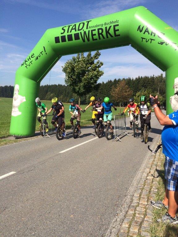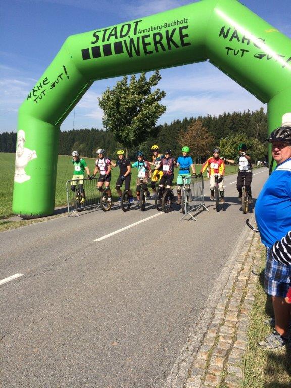 Zum Vergleich: 2014 Lag die Siegerzeit bei 1:43:40,7, allerdings bei vollkommen durchnässter Strecke im Dauerregen, und 2013 bei 1:24:33,7 jedoch mit einem 36″ Einrad.