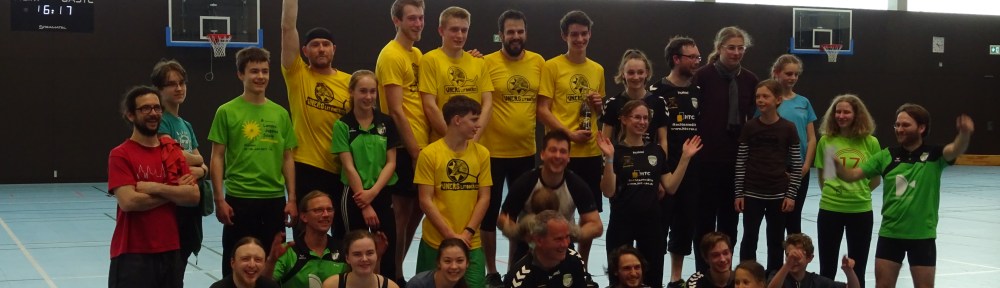 Am gestrigen Sonntag fand in der Halle des Marie Curie Gymnasiums in Dresden das 49. Dresdner Einradhockeyturnier statt. Gemeldet waren 5 Teams. Das bedeutete, dass die einzelnen Spiele und Halbzeiten aufgrund der Anvisierten Spielzeit von 2h pro Turnier pro Team sehr lang ausfielen. Pro Spiel waren 2x 15 Minuten zu absolvieren. Jedes Team musste 4 Spiele bestreiten, was in Summe 10 Spiele waren. Das Turnier hatte auf jeden Fall viele spannende Partien zu bieten. Leider waren einige Spiele auch von den noch unerfahrenen Schiedsrichtern geprägt. Zum einen ist das natürlich für die spielenden Mannschaften oft ärgerlich, wenn nicht alle Vergehen gesehen und gepfiffen werden, zum anderen ist es natürlich auch gut, wenn neue Spieler Schiedsrichtererfahrungen sammeln.