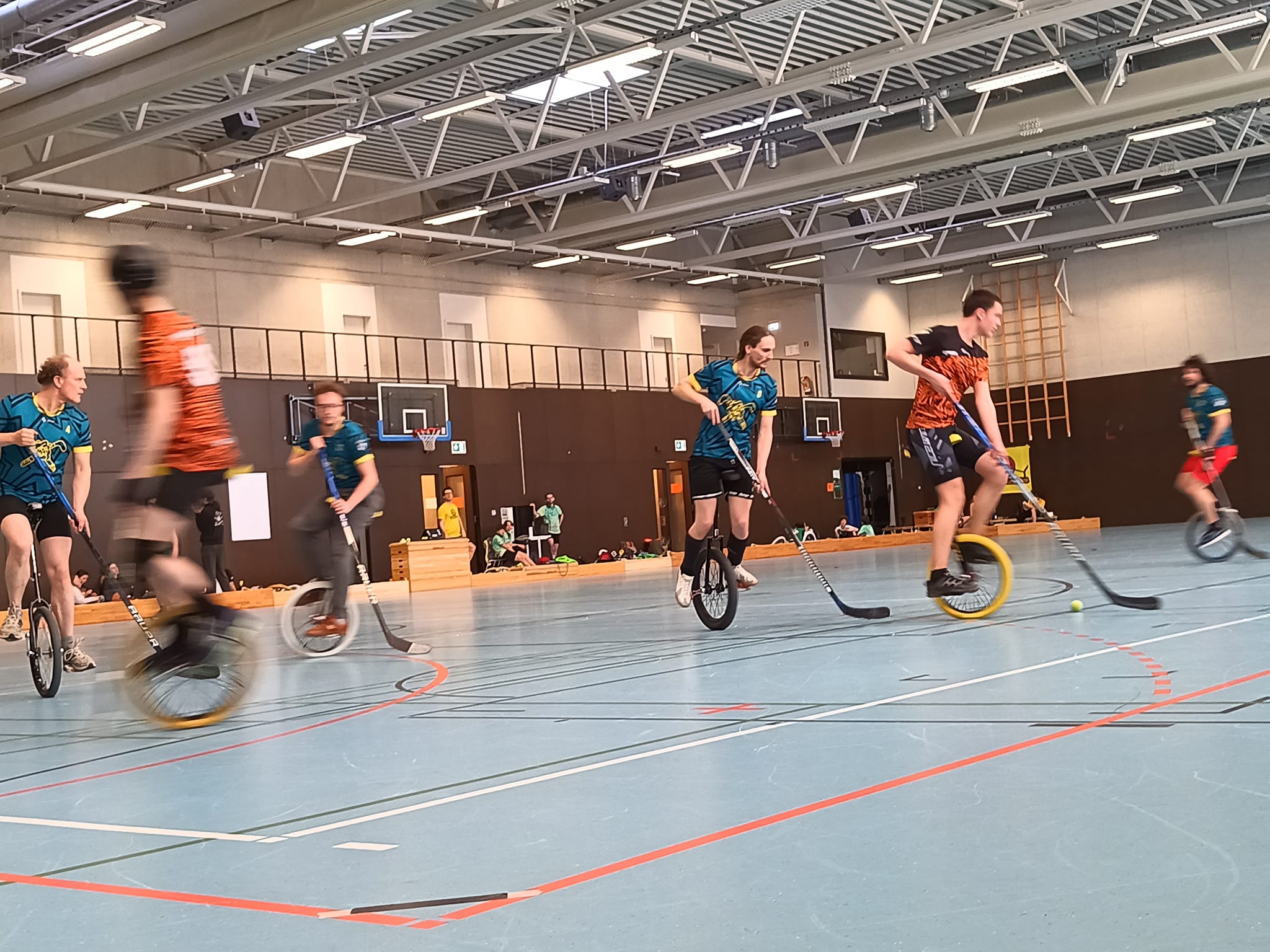 Am gestrigen Samstag, den 9. März, fand bereits das siebente Dresdner Ligaturnier in dieser Saison statt. Neben vielen der üblichen Verdächtigen hatte sich diesmal auch Berlin angemeldet. Während die Gäste in der Meisterschaft als direkte Konkurrenten der Tiger direkt hinter diesen in der Tabelle lagen, war ihre Wertigkeit in der Rangtabelle um einiges höher als die der Dresdner. Getragen von einem hochwertigen Turniersieg in der letzten Saison war die Wertigkeit der Berliner vor dem Turnier um 62 Punkte höher. Das sind genau die Gegner, die die Tiger jetzt in der Meisterschaft benötigen. Außerdem waren natürlich die Dresdner Einradlöwen angemeldet sowie die UniLipsSticks aus Leipzig. Von außerhalb Sachsen reisten auch die äußerst erfolgreichen Meisterschaftsneulinge MUH-Bande aus Jena und die Uners aus Litoměřice an. Wie so oft waren ausreichend Spieler für ein Mixteam vorhanden, dieses trat diesmal unter dem Namen „Großwildjäger“ an. Es waren also alle Leistungsklassen vertreten.